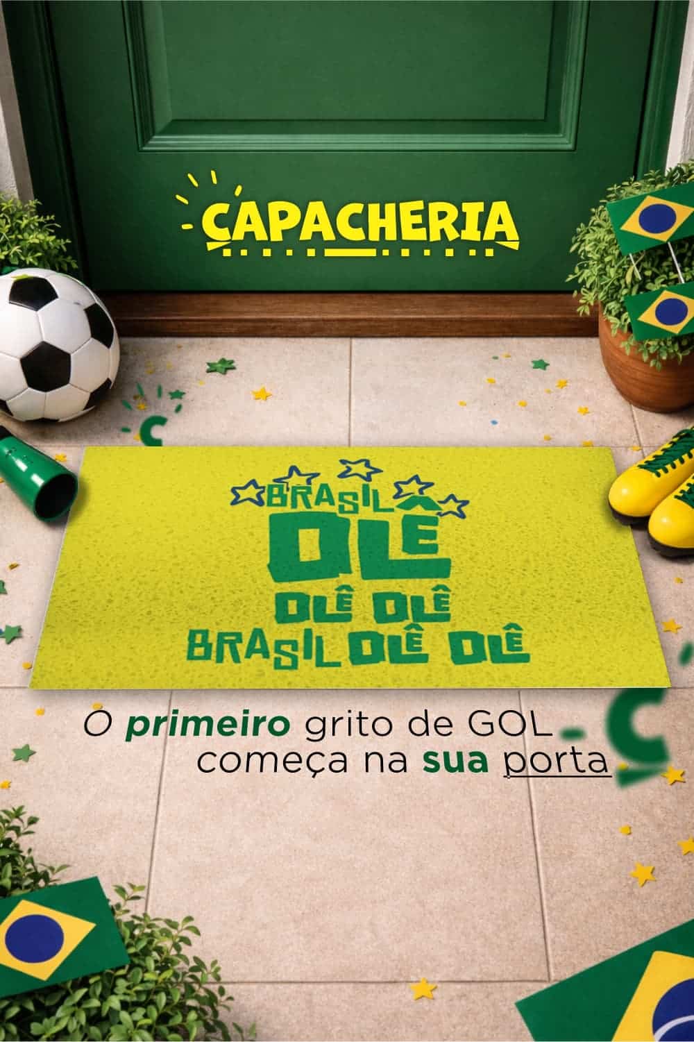 Se você vive o futebol com emoção, vibra a cada lance e sente o coração acelerar a cada gol, o Capacho Brasil Olê Olê da Capacheria foi feito exatamente para você. Esse modelo transforma a entrada da sua casa em um verdadeiro ponto de torcida, trazendo toda a energia da arquibancada para o seu dia a dia.