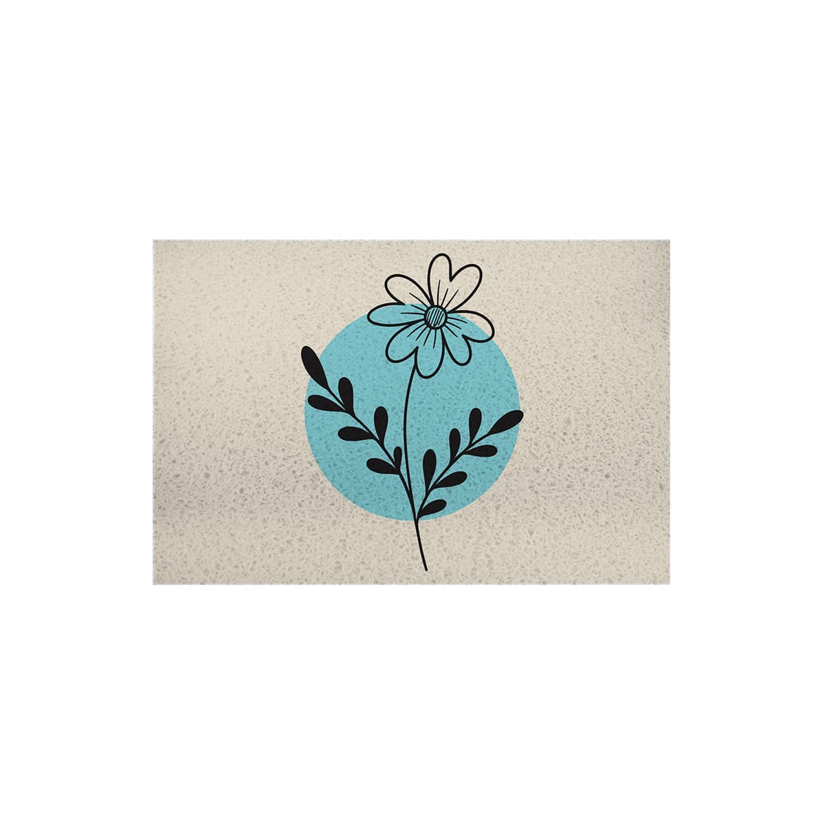 Diferente dos modelos tradicionais, esse capacho aposta em um design limpo e sofisticado. A composição com flor central e elementos naturais, combinada com um fundo suave e um círculo em tom contrastante, cria uma estética moderna e equilibrada. É um produto pensado para quem valoriza detalhes sutis e um ambiente harmonioso.
